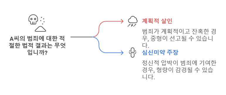 법원은 범행의 계획성, 잔혹성, 피해자의 수 등을 고려하여 형량을 결정합니다. A씨의 경우, 자신의 친자녀 두 명을 살해한 점에서 중대한 범죄로 평가될 가능성이 높습니다. 그러나 범행 동기가 육아 스트레스와 정신적 압박에서 비롯되었음을 고려하여, 심신미약 상태를 주장할 여지가 있습니다.