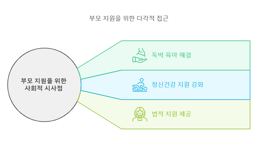 육아로 인한 정신적 스트레스를 해소하기 위한 상담 및 지원 서비스의 접근성을 높여야 합니다. 지역 사회와 정부는 육아 중인 부모를 대상으로 한 정신건강 프로그램을 강화할 필요가 있습니다.