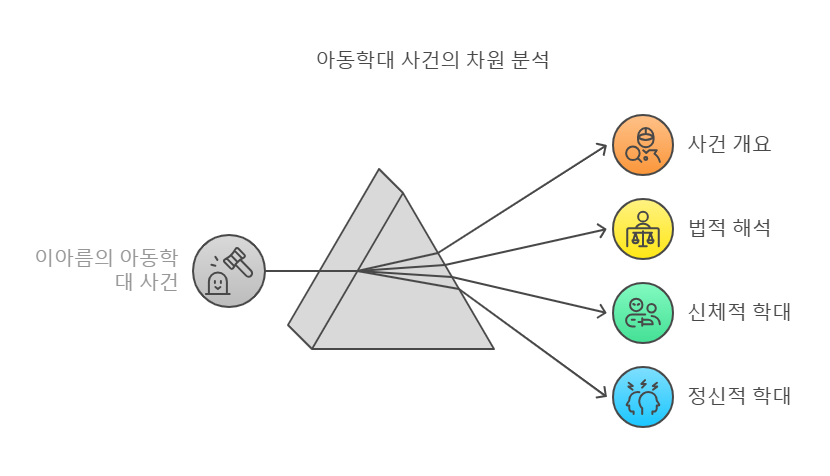 아동학대는 아동복지법에 의해 금지되며, 아동을 폭력적으로 대하거나 신체적, 정신적 고통을 주는 행위는 엄중히 처벌됩니다. 아동학대의 범위에는 신체적인 폭력뿐만 아니라 정신적, 정서적 학대도 포함됩니다. 이아름은 아동에게 신체적 폭력을 가했으며, 그로 인해 피해 아동의 정신적 건강도 심각하게 훼손된 것으로 보고되었습니다. 법원은 이러한 행위가 아동에게 지속적인 고통을 안겨줬다는 점을 고려해 엄중히 처벌할 필요가 있다고 판단했습니다.