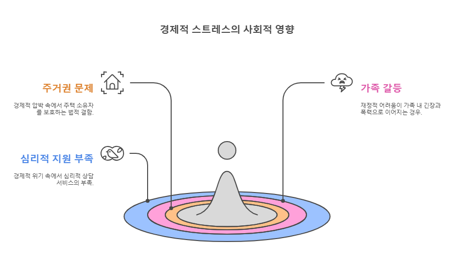 경제적 위기로 인해 가정 내 비극적 사건이 발생하는 것을 막기 위해, 긴급 주거 지원과 심리 상담을 제공하는 체계적인 법적 제도가 필요합니다. 예를 들어, 독일의 경우 경제적 위기 시 임차인의 퇴거를 일정 기간 유예하고, 이 기간 동안 재정적 지원을 제공합니다.