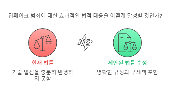 딥페이크 범죄는 성폭력범죄의처벌 등에 관한 특례법 위반으로 처벌됩니다. 해당 사건에서 재판부는 피해자의 동의 없이 제작 및 유포된 음란물에 대해 강력한 처벌 필요성을 언급했습니다. 현재 법률은 딥페이크 기술의 발전 속도를 충분히 반영하지 못하고 있어, 추가적인 입법 보완이 요구됩니다. 특히, 딥페이크 영상 제작과 관련된 명확한 규정과 피해자 구제를 위한 제도가 필요합니다.