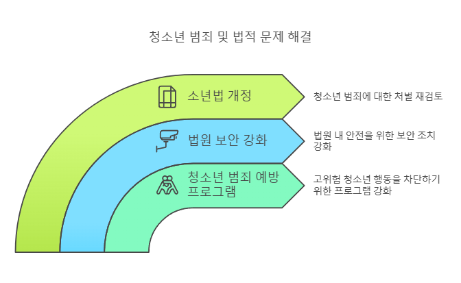 소년법 개정 논의는 중대한 범죄에 대해서 미성년자라 하더라도 보다 강력한 처벌을 적용할 필요성을 제기하고 있습니다. 예를 들어, 일본과 미국의 사례에서 보듯이, 중대 범죄에 대해 성인과 유사한 처벌을 도입하는 것이 효과적인 억제책이 될 수 있습니다. 더불어, 개정 논의는 미성년자에 대한 형사 책임의 한계를 재검토하며, 청소년들이 자신의 행동에 책임을 느끼도록 제도적 환경을 조성하는 것을 목표로 해야 합니다. 이를 통해 범죄 예방과 정의 실현이 동시에 이루어질 수 있을 것입니다.