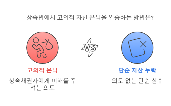 상속재산을 은닉하여 상속채권자를 사해할 의도가 있었는지는 이를 주장하는 측이 입증해야 합니다.