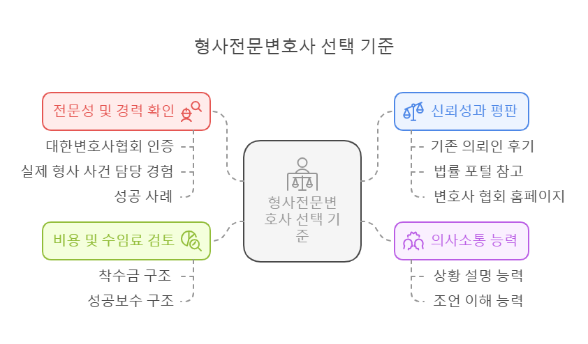 형사 사건의 특성상, 변호사의 전문성과 경험이 중요합니다. 대한변호사협회 인증 여부, 실제 형사 사건 담당 경험, 성공 사례 등을 확인하는 것이 필요합니다.