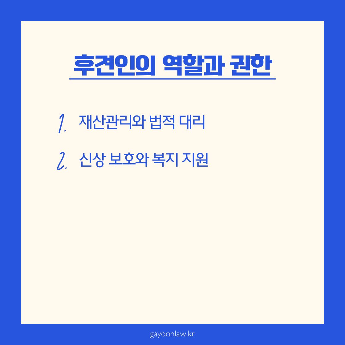병원 치료, 생활 지원 등 실질적인 도움이 필요할 때 이를 결정할 권한을 가집니다.